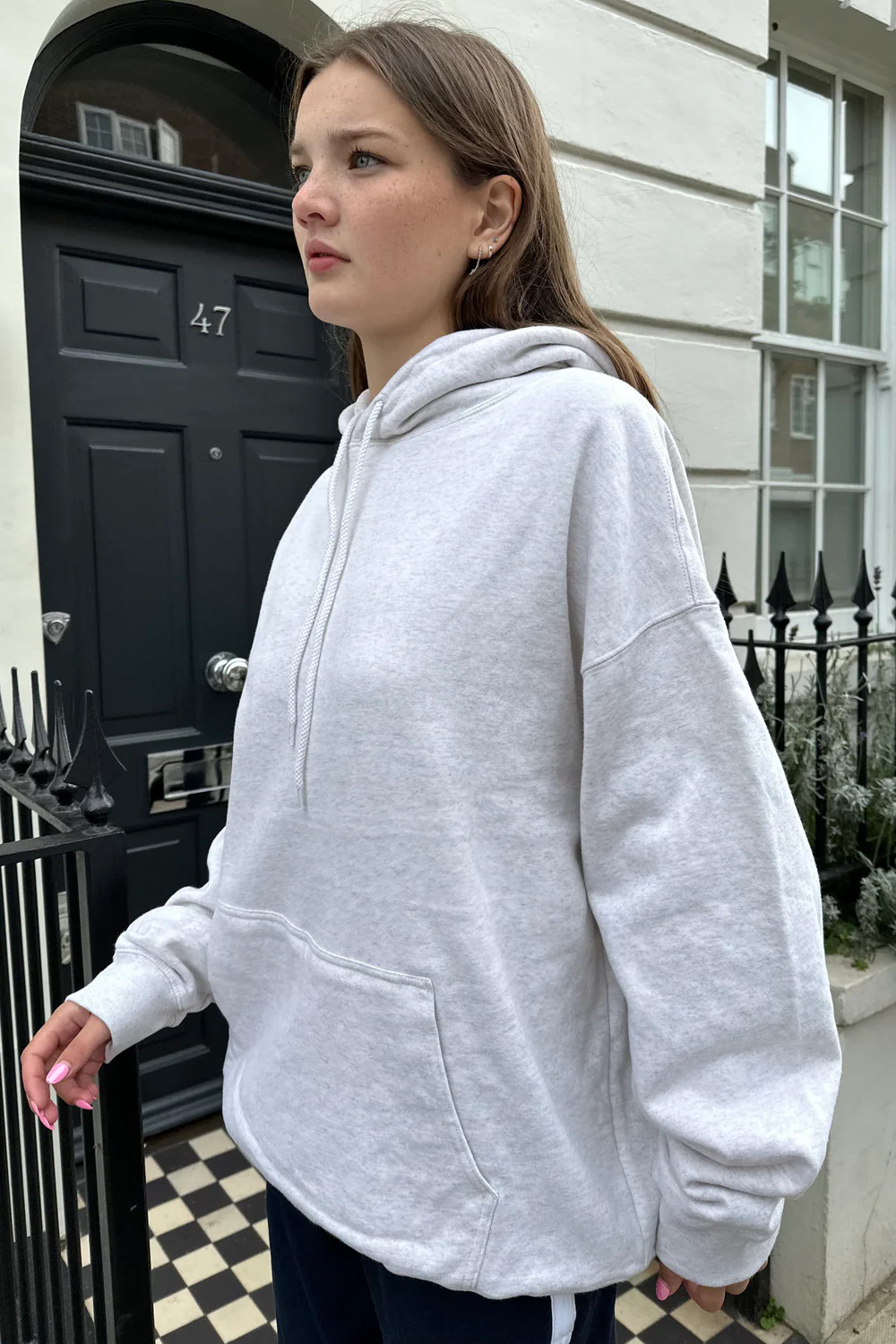 Oversized soft hoodie with drawstrings, and kangaroo pockets.