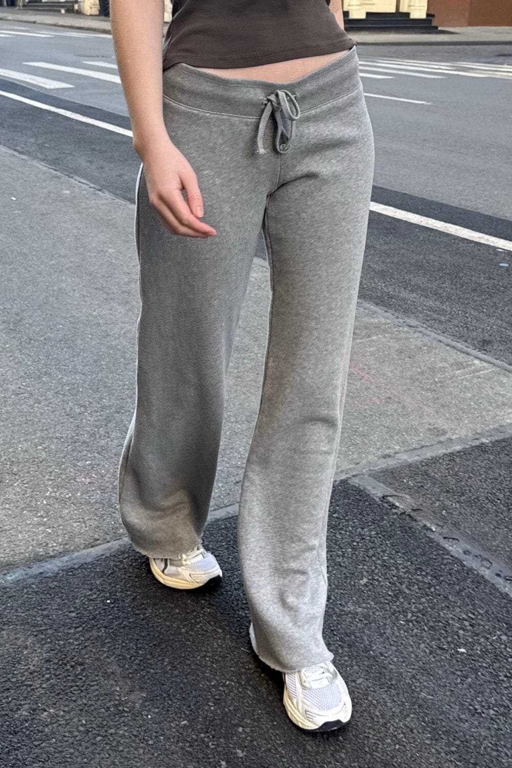 Soft cotton fleece lined tie yoga pants with a flared pant leg.