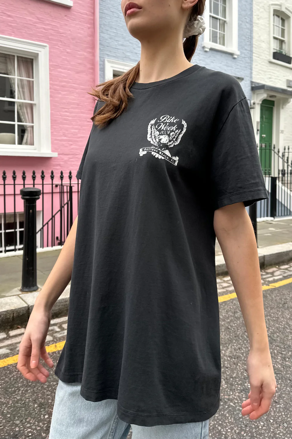 Oversized fit, black, short sleeve top with Bike Week 2004 graphic printed on the chest and back in white.